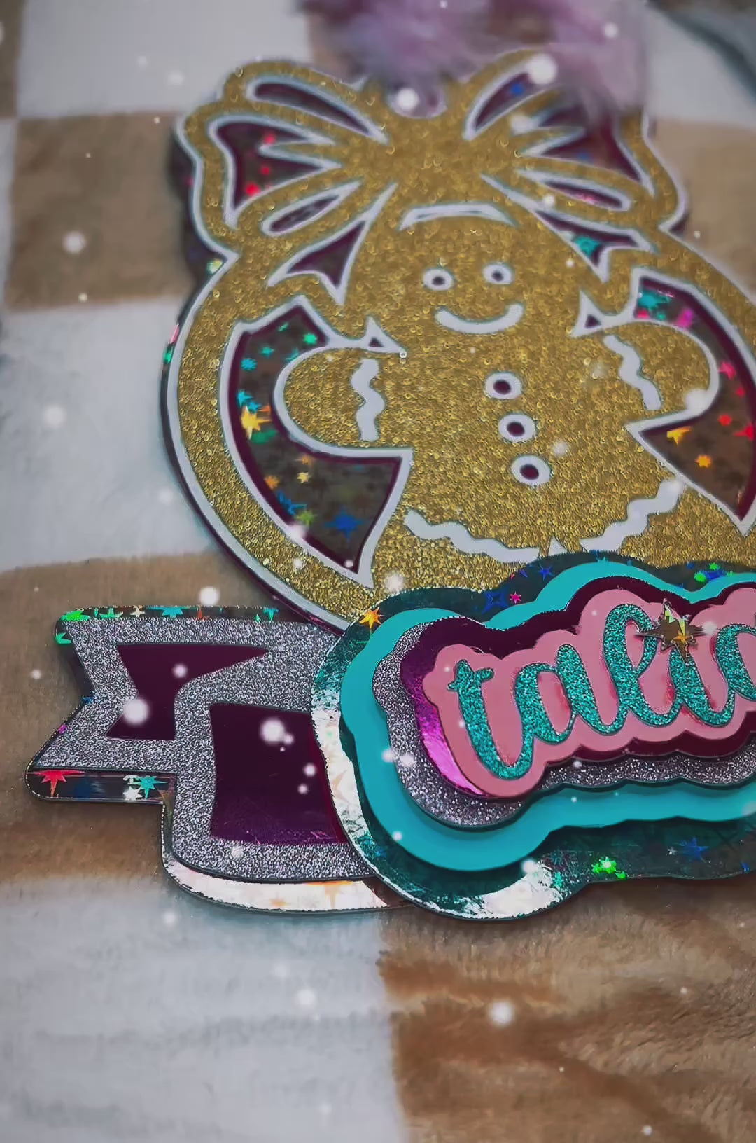 Add a sweet touch of holiday magic with this Custom Layered 3D Gingerbread Ornament — a personalized name tag handcrafted with high-quality cardstock, glitter accents, and soft girly details. Each piece is designed to “pop” with layered dimension, making it the perfect keepsake for Christmas stockings, gift bags, classroom tags, or festive home décor.